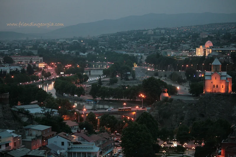 Сумерки в старом городе. Метехи - справа. Фото: Friend in Georgia