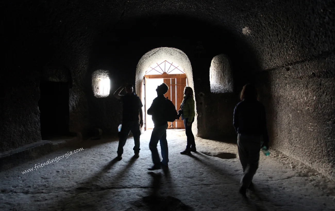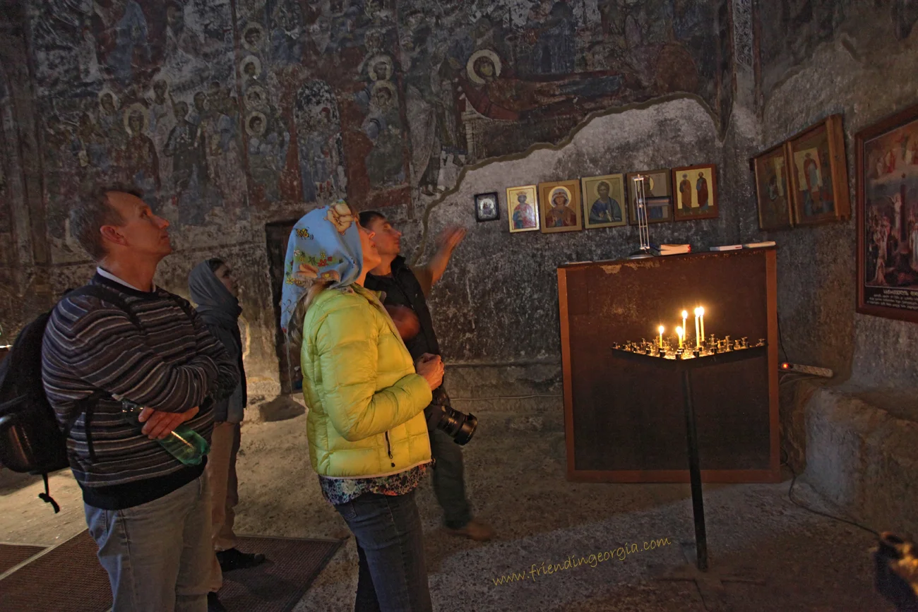 В центре комплекса Вардзиа расположен храм Успения Богородицы. В 16 веке, когда Вардзию захватили персы, они сожгли заживо всех, кого смогли схватить в окрестностях... Этот акт небывалой жестокости позволил сохранить уникальные фрески храма - их несколько сотен лет надежно укрывал слой копоти.